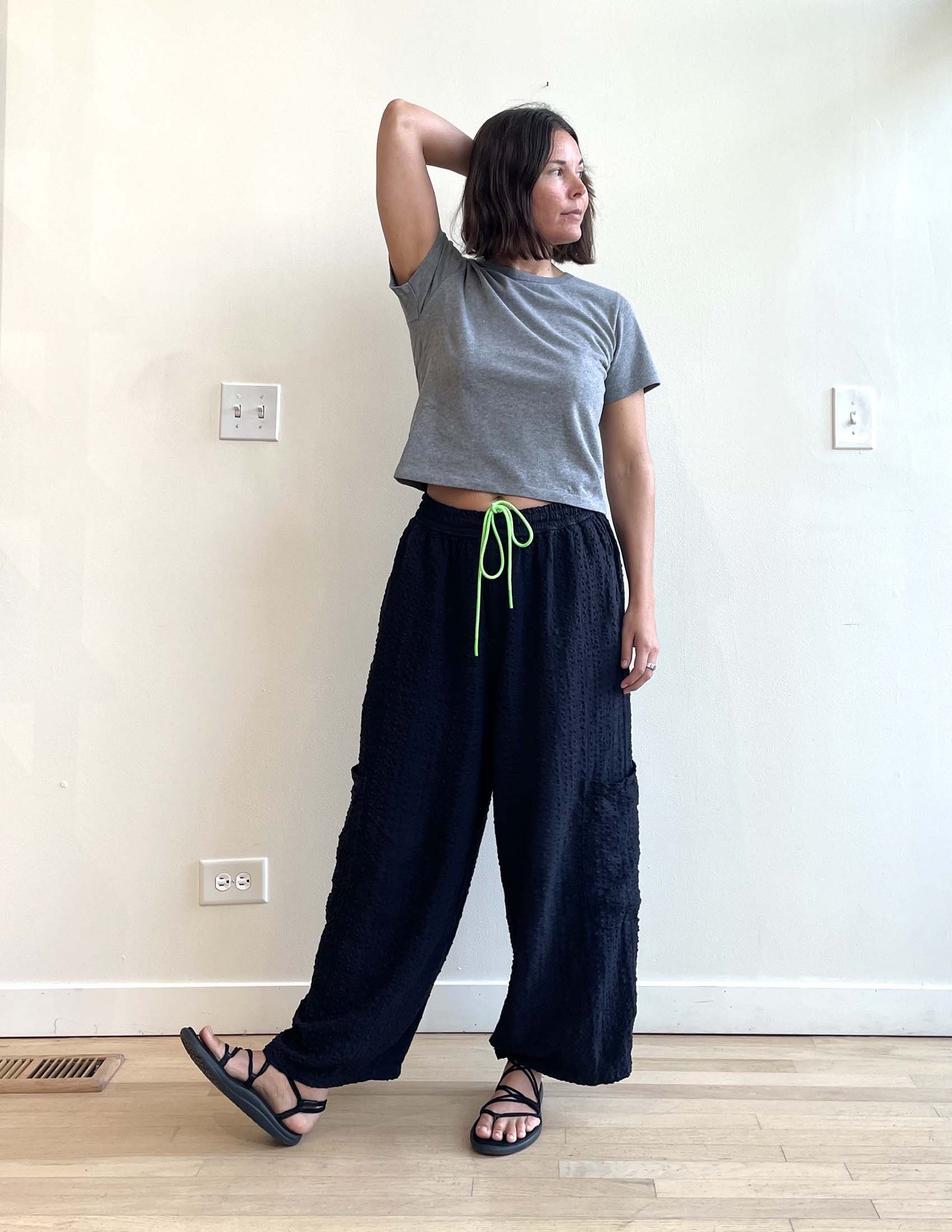 Our collection of pants, sourced from our favorite ethical and sustainable apparel brands, is highly curated to have the pieces that will become your go-to bottoms, this season and into the future. Designed in timeless silhouettes that add dimension to your wardrobe and cut in fabrics that will last for years to come, you're sure to find a new wear-it-with-everything favorite.