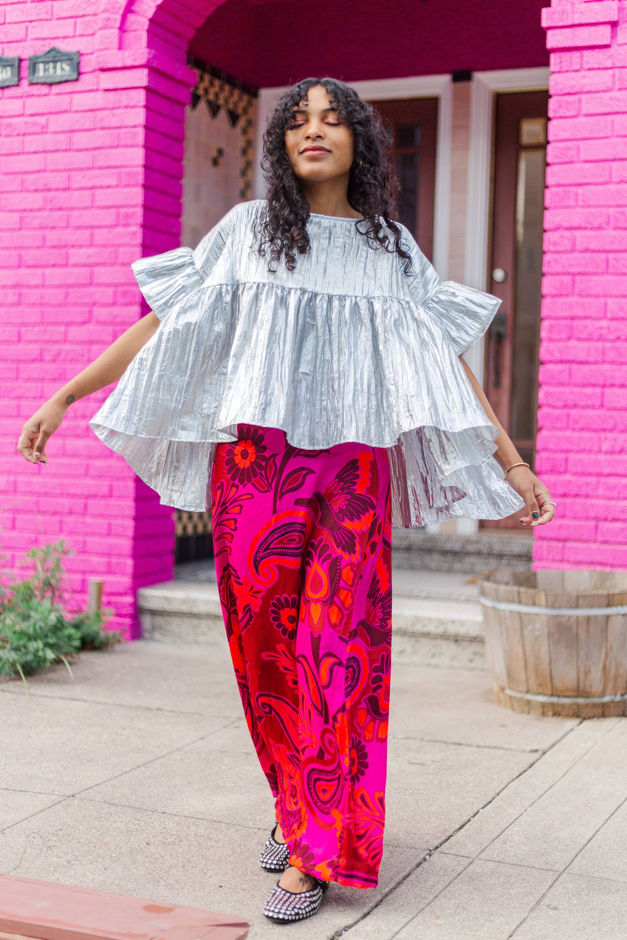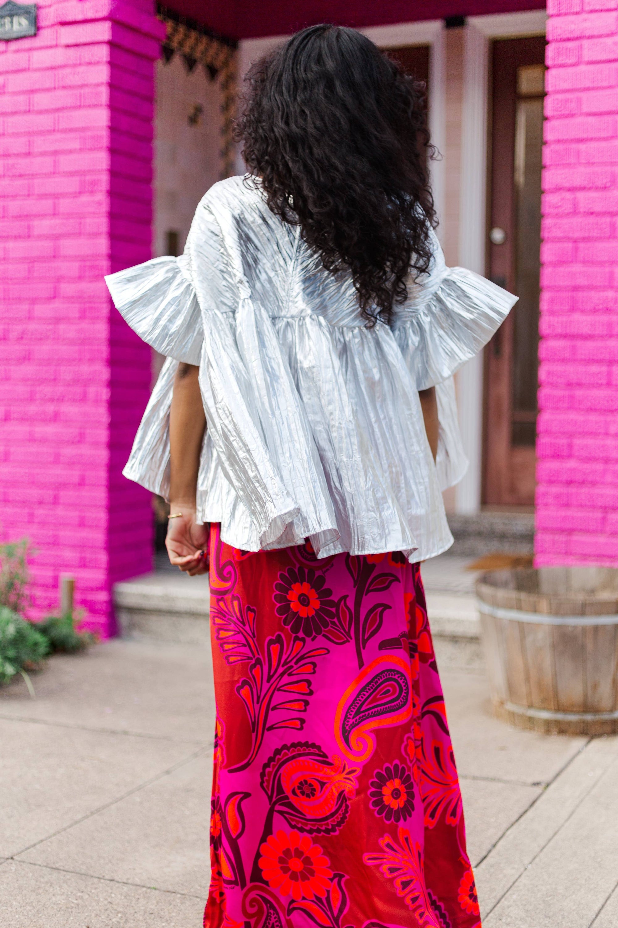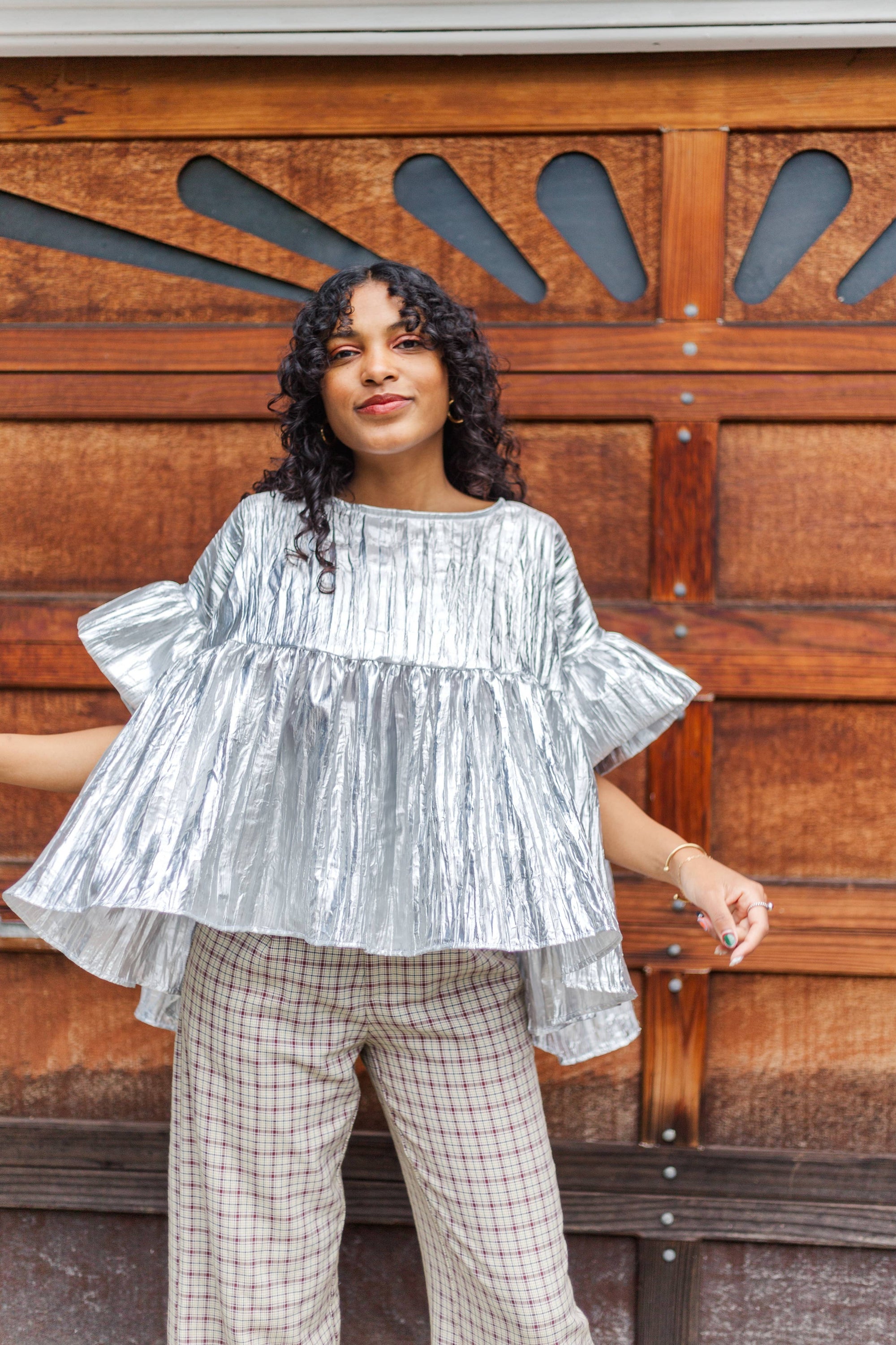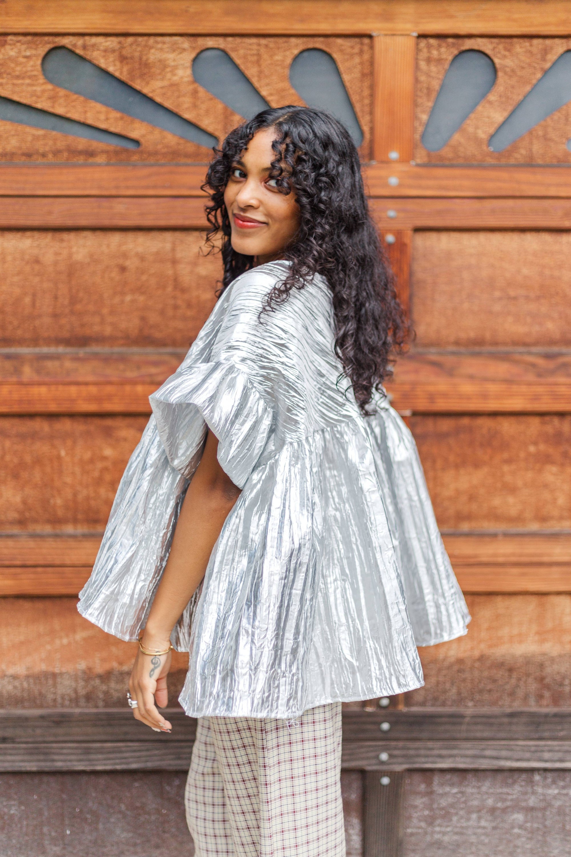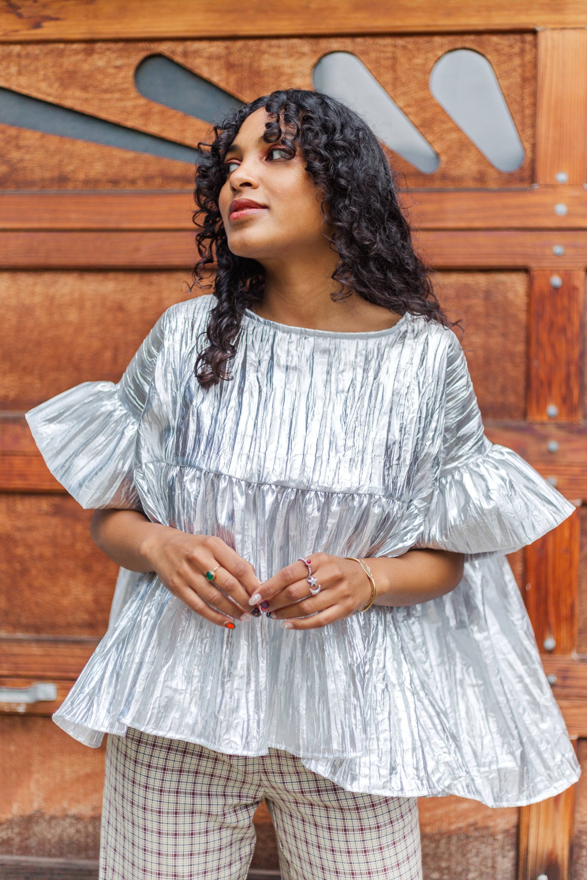 Silver Metallic Gathered Top